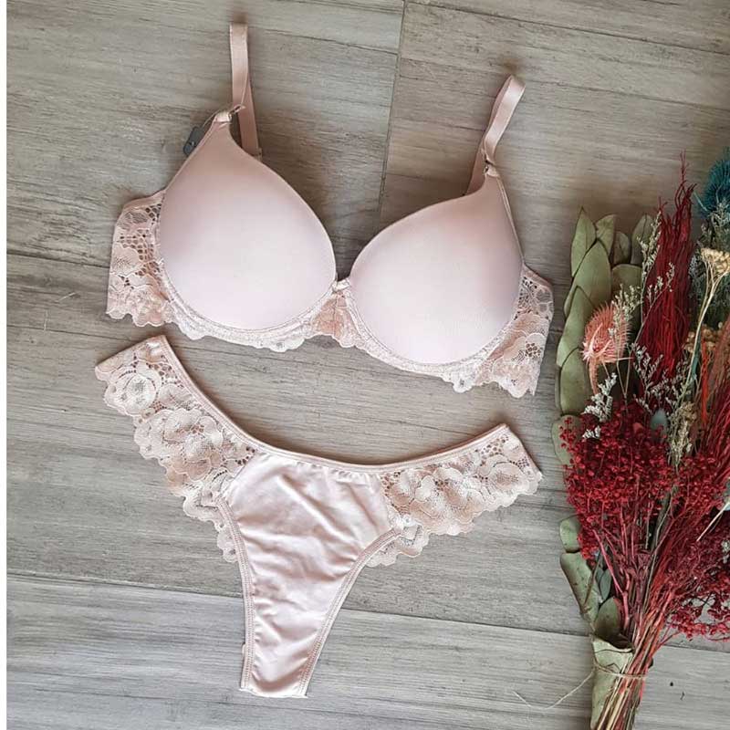 Nos encanta este conjunto porque sin ser un básico, la taza «lisa» nos permite usarlo con cualquier prenda sin que se marque. Además tiene detalles de Puntilla que le dan su toque especial.
